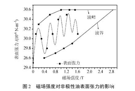 圖2磁場強度對非極性油表面張力的影響