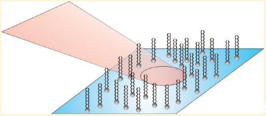 在過去的幾十年中,紅外-可見和頻發(fā)生(SFG)已被證明是研究水相表面活性劑的極好工具。1.?9在該技術(shù)中,紅外激光束與可見激光束在感興趣的界面處組合,并檢測兩者的和頻光束。在中心對稱介質(zhì)中,信號的產(chǎn)生通常是被禁止的,因此對界面上分子的存在非常敏感。如果紅外激光與界面分子的振動躍遷共振,則SFG強(qiáng)度增強(qiáng),從而可以測量界面分子的振動光譜。SFG光譜的形狀包含有關(guān)表面活性劑的分子構(gòu)象和方向的信息。大多數(shù)研究都集中在高密度單分子膜上,盡管在低密度下有令人驚訝的觀察報(bào)告。我們中的一些人(Roke等人4)以前曾報(bào)告過C?H不溶性表面活性劑DPPC(1,2-二棕櫚酰-sn-甘油-3-磷酸膽堿;見圖1)在水上的拉伸模式,密度約為100?2/分子,密度間隔小于1?2/分子,這歸因于脂質(zhì)尾部的卷曲和未卷曲。最近,Chen等人9報(bào)告了DPPC在水和含有低二甲基亞砜摩爾分?jǐn)?shù)的水上的CH信號在該密度附近的類似行為。此外,他們報(bào)告說,來自DPPC頭部總成的P=O振動信號僅在CH信號存在時出現(xiàn)。他們將CH信號的缺失/存在歸因于DPPC分子的無序/有序尾部。P=O信號的缺失可通過頭部大的取向分布來解釋。