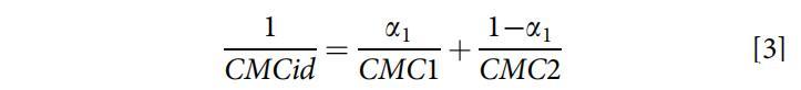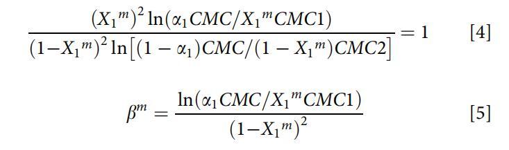 從Clint方程(方程3)[25]中獲得了描述混合膠束形成理想狀態(tài)的理論理想混合CMCid: