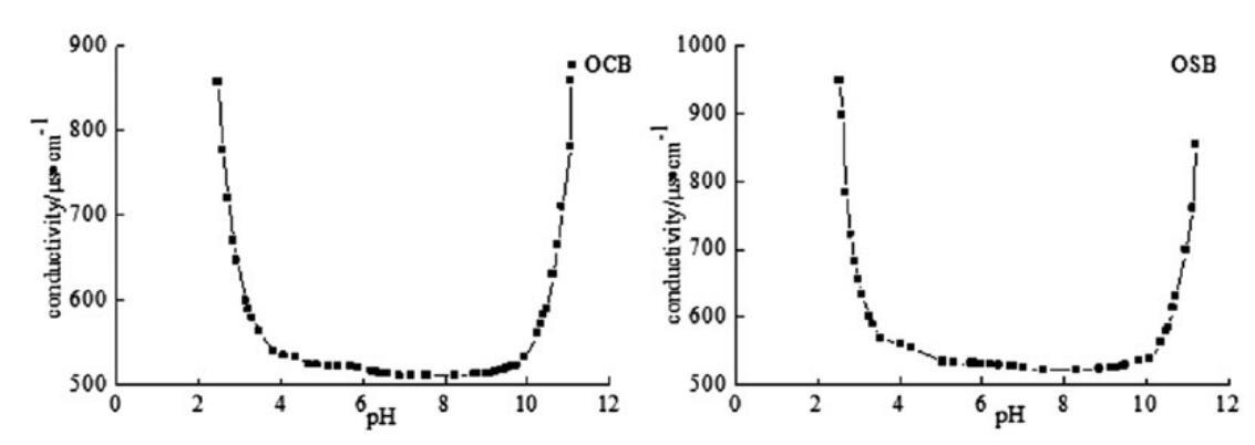 圖4。OCB和OSB在25℃時(shí)的pH電導(dǎo)率曲線。