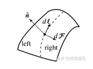這是一個彎曲的液面表面,左側(left)是其原來的面積,右側(right)是擴展的部分,dl即單位長度,n指示曲面的法向量方向。這樣就可以很清晰地看出來了,使表面擴展的力是沿著表面的切線方向的。