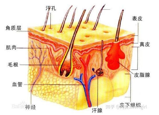 下面我們來分析皮膚的結構。皮膚的結構如下圖所示: