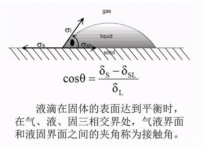 潤(rùn)濕:用一種流體取代固體表面另一種流體的過程。潤(rùn)濕角亦稱接觸角。