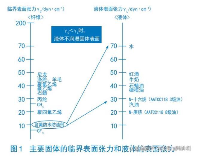 含氟整理劑之所以具有優異的防水、防油、防污的性能,是因為含氟整理劑可使被整理織物表面具有非常低的表面張力,不僅低于水,而且低于各種有機液體,因而使其具有防水防油性。