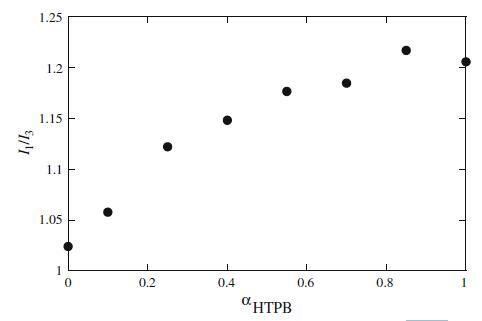 圖7 HTPB+Mega-10混合體系中芘熒光強度的I1/I3比與αHTPB的關系圖