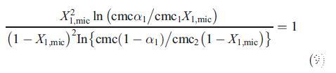 為了討論由兩種二元混合物形成的混合膠束的性質,即混合膠束是否顯示理想或非理想行為,我們使用了偽相分離模型[19]。根據(jù)該模型,膠束被認為是與含有相應單體的溶液平衡的宏觀相。對于二元表面活性劑混合物,理想cmc由方程[19]關聯(lián):