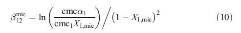 這些結果可以通過使用規(guī)則溶液理論(RST)得到證實,該理論不僅表征了混合膠束中的相互作用參數(shù)bmic 12,還解釋了偏離理想狀態(tài)的原因[20]。根據(jù)RST,混合膠束中的活性系數(shù)表示如下: