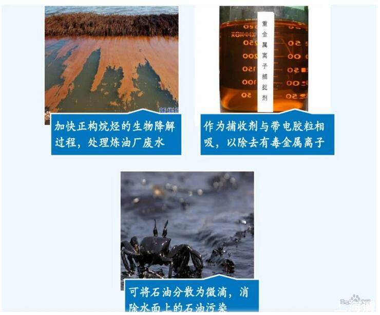 目前它比較廣泛的應用于石油工業、綠色農業和生態環境方面,此外在食品行業、化妝品、醫療方面也有較大的應用潛力。
