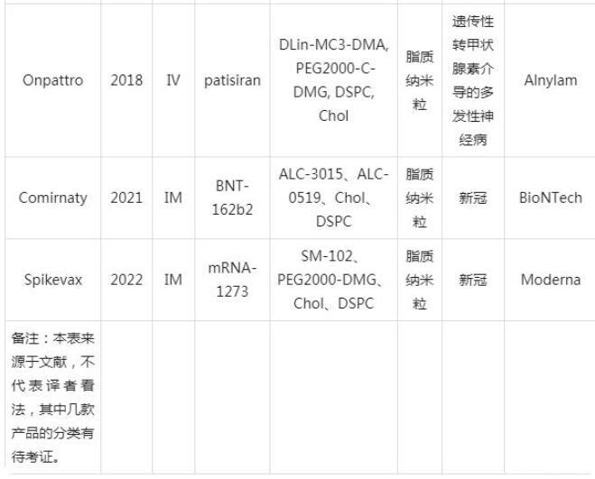 (1)基于脂質納米粒的上市產品