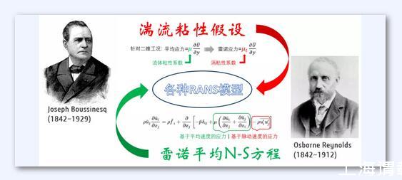 湍流粘性來源于雷諾平均的N-S方程,下式中多出來的脈動應力項,稱之為雷諾應力。1877年Boussinesq借助于牛頓切應力公式,提出了影響深遠的渦粘性假設:雷諾應力正比于時均速度梯度,其中比例系數μt表征了湍流脈動引起的切應力效應,稱為渦粘性系數。