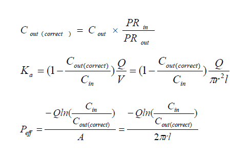 對于易于吸收的藥物,即Peff>0.2×10?4cm/min,灌流時溶液密度的變化對測量結果影響不大,可以默認ρin=ρout=1 g/mL,即校正濃度Cout(Correct)=Cout×mout/min。