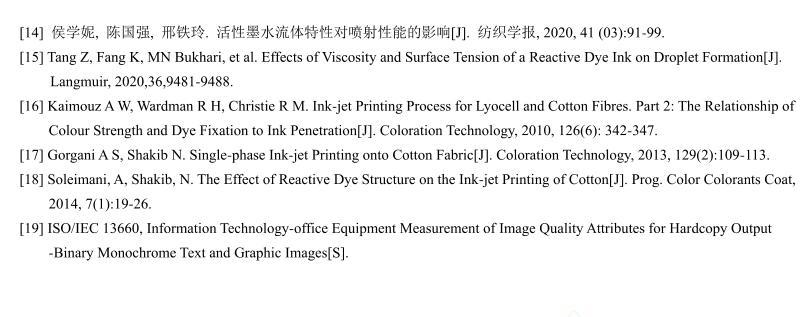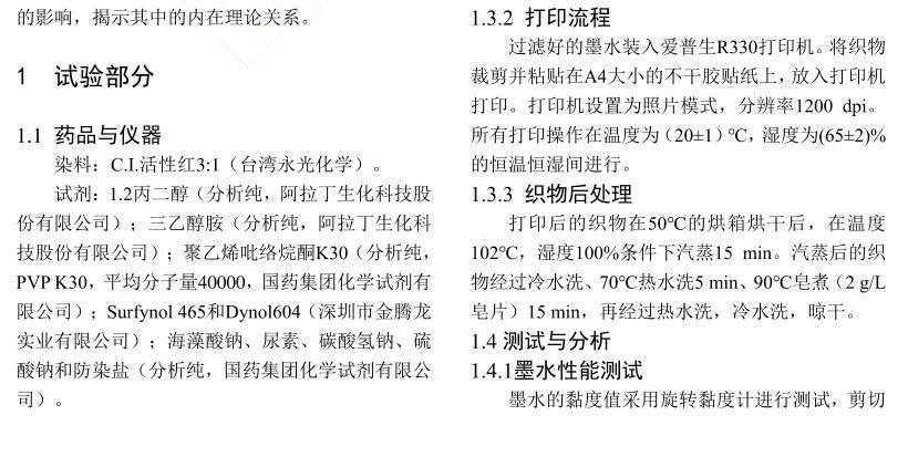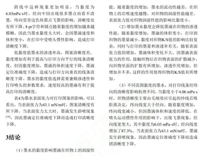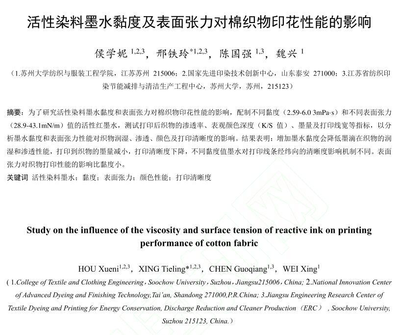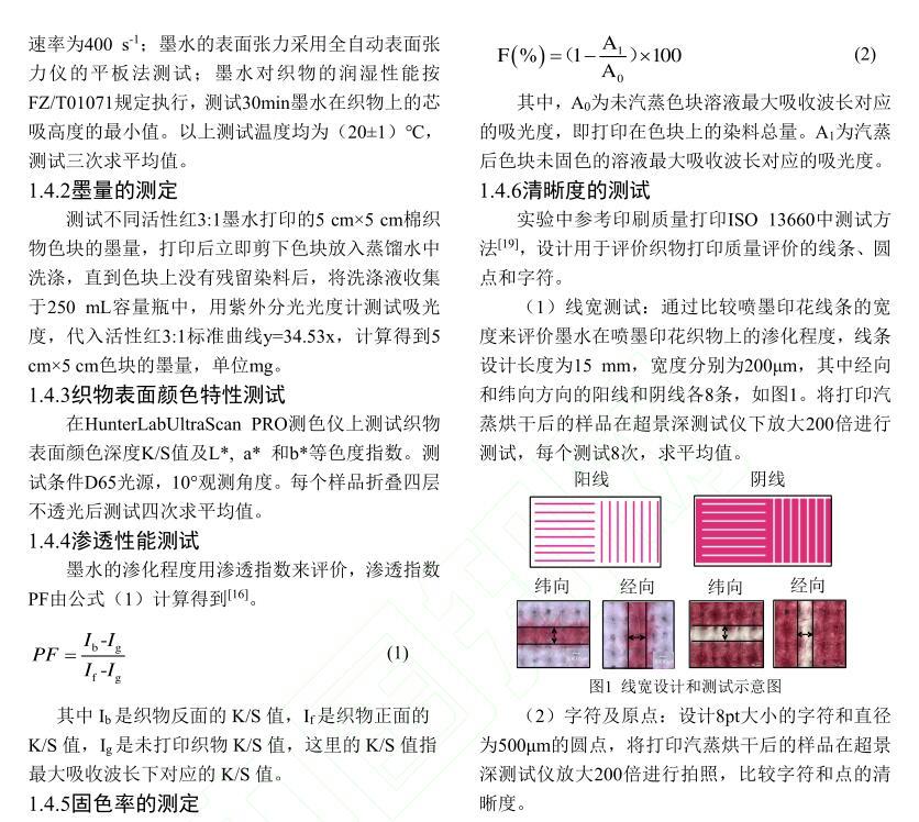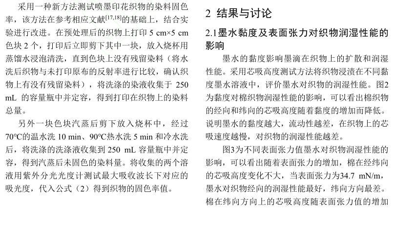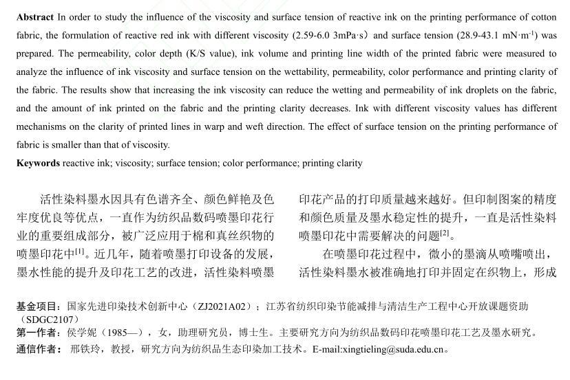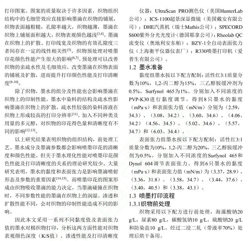 活性染料墨水黏度及表面張力對棉織物印花性能的影響