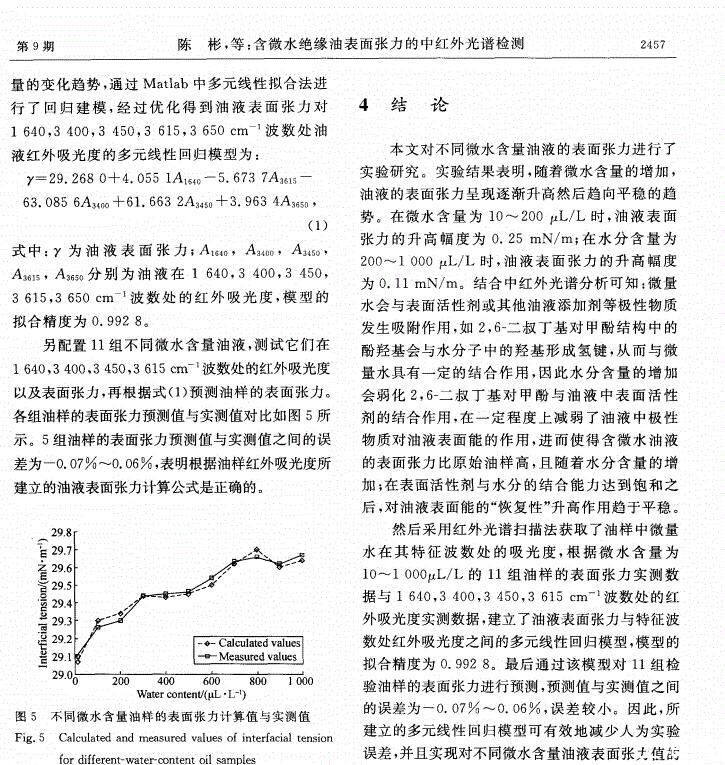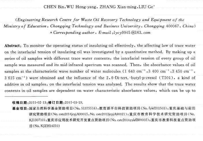 含微水絕緣油表面張力的中紅外光譜檢測