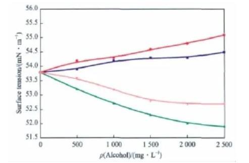 不同的醇對BHEC水溶液表面張力的影響