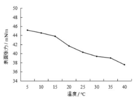 將配制好的合成血液分別放置5℃~40℃的環境中1小時,然后取出測定其表面張力,每個溫度連續測定5次并取其算術平均值作為表面張力的結果。
