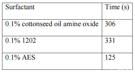 為了比較,還列出了正十二烷基二乙醇胺(1202)和醇醚硫酸鈉(AES)的水分離時間。 從表 3 可以看出,在表面活性劑濃度為 0.1% 時,蓖麻油酰胺 氧化胺和棉籽油酰胺氧化胺有更長的水分離時間 比AES,這意味著合成的兩種天然植物油酰胺胺 氧化物具有良好的乳化能力,尤其是蓖麻油酰胺氧化胺。 這 棉籽油酰胺氧化胺的乳化能力與1202相近。 還發現蓖麻油氧化胺的乳化能力優于蓖麻油氧化胺 棉籽油氧化胺,這也歸因于平均烷基鏈長。 [14] 此外,作為乳化劑,它們可以在較寬的pH范圍內使用。